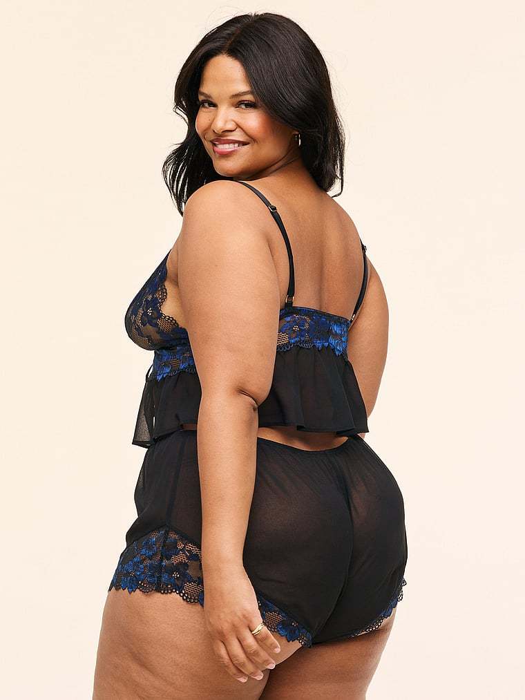 Dainty lace offsets sheer chiffon on this romantic set for an ultra-luxurious feel.