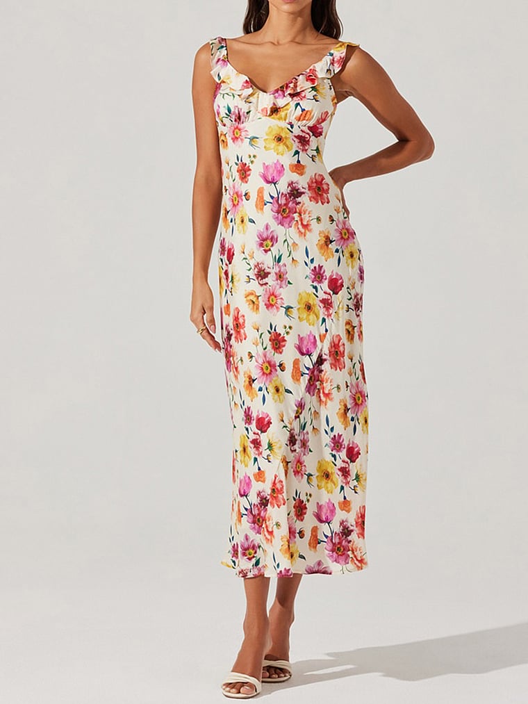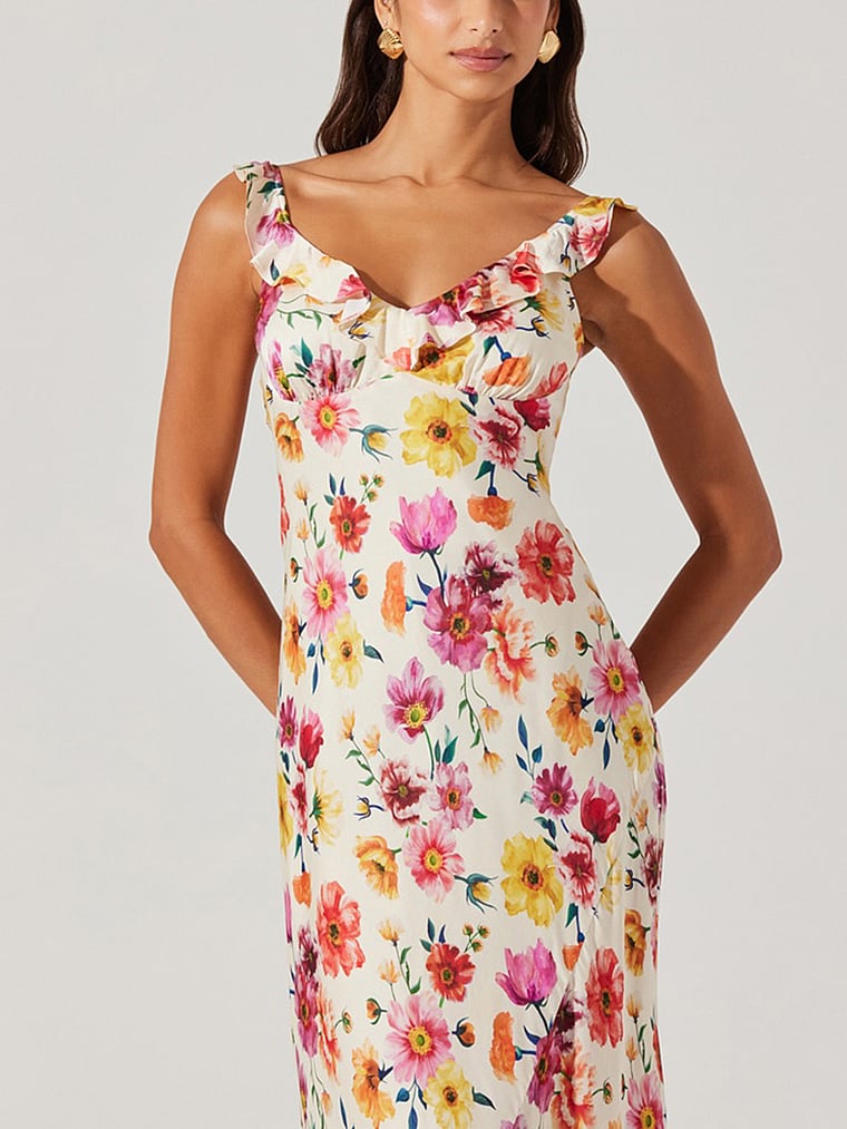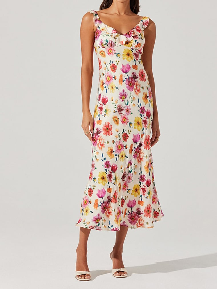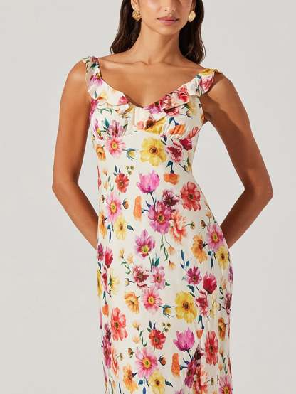 For roaming through lush and ardent green gardens. This chic, satin slip-style Dress gets a romantic upgrade thanks to a dreamy ruffle detail at the straps and neck. Sewn-in cups add extra support.