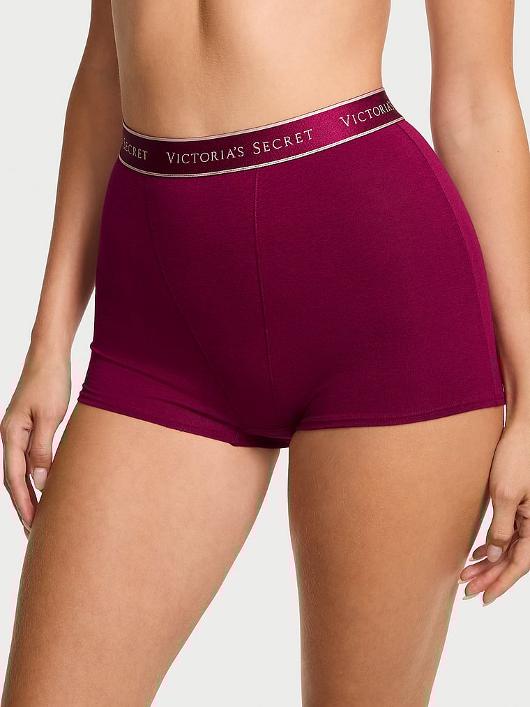 With a borrowed-from-the-boys look and flattering high waist—you’ll love these supersoft shorties featuring our signature, stretchy logo waistband.