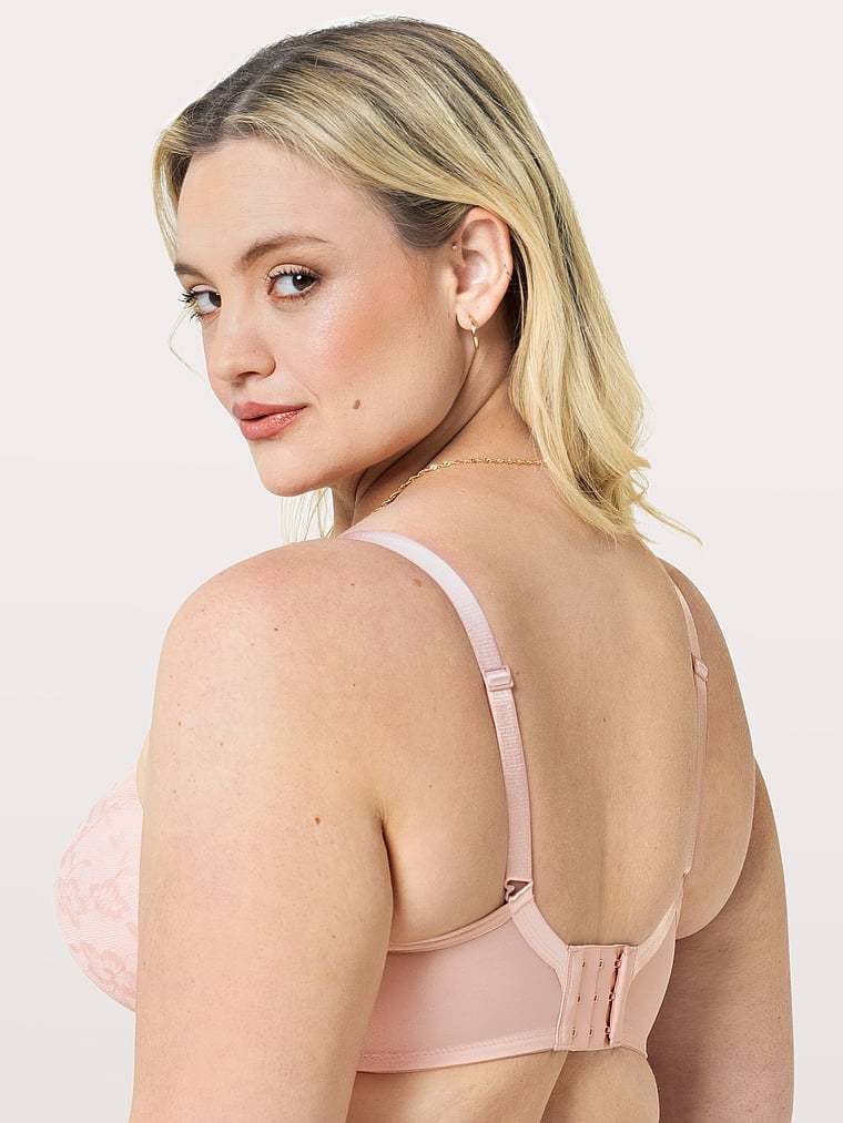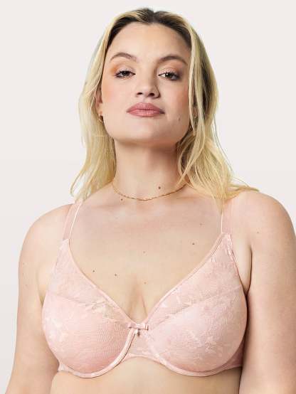 Designed with a smooth, allover floral lace, this style features Curvy Couture’s signature tulip pads that offer perfect coverage and a gradual lift that enhances your natural shape. A plunging neckline makes it a go-to under any outfit, but especially those with lower necklines.