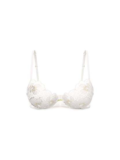 Celebrate your big day—and beyond—right down to your Lingerie. Designed in Switzerland, stunning peony embroidery is centered with shimmery metallic threads for a glamorous effect on this elegant Demi Bra.