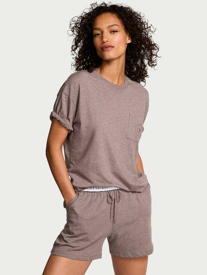 Discover an all-cotton essential Set you'll wonder how you lived without. On top, a soft, short-sleeved Tee, while the matching drawstring Shorts feature a foldover waistband with our signature logo elastic.
