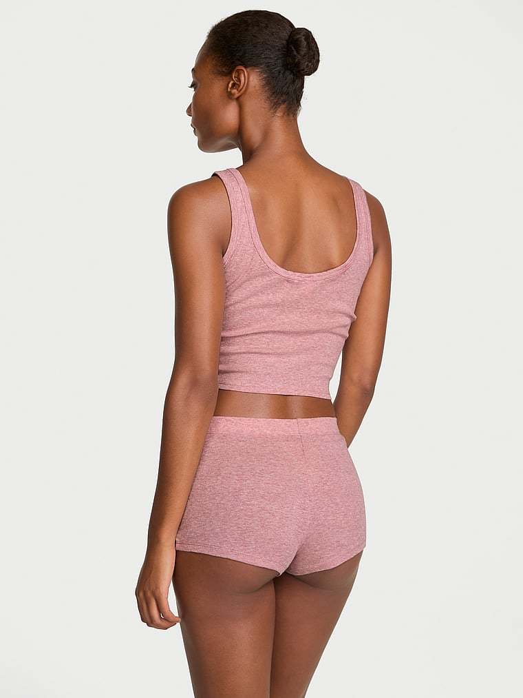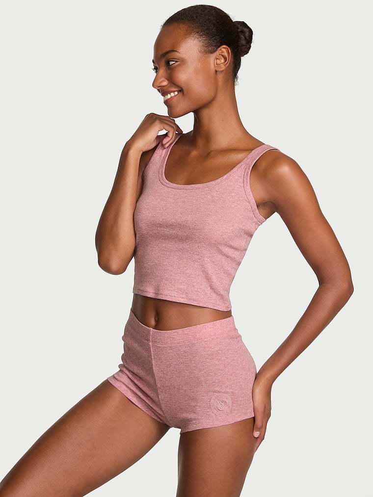 Our pure-cotton fabric is so soft and comfy, it's just the thing for lounging and sleeping. On top, a fitted Tank with our new logo plaque hardware front and center. On the bottom, curve-hugging Shorts with an easy elastic waist.