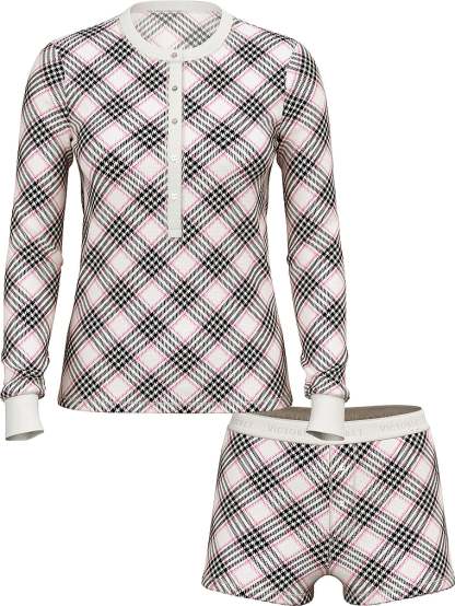 This cozy set fits close to the body and comes in supersoft cotton with a hint of stretch. Features a henley top plus cute shorts in a variety of colors and prints.