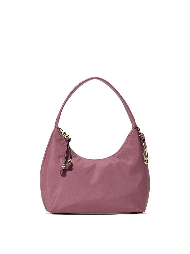 This small shoulder bag masters the art of everyday elegance. Featuring an on-trend, curved silhouette with an interior zip pocket and top closure to protect your belongings. Crafted with luxe nylon fabric plus a faux-leather shoulder strap for a chic look.