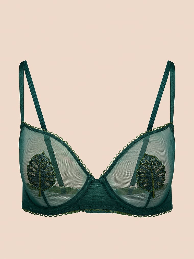 Sheer stretch tulle and an embroidered motif bring the magic to this must-have style. A supportive underwire and adjustable straps make the demi cup silhouette a perfect fit.