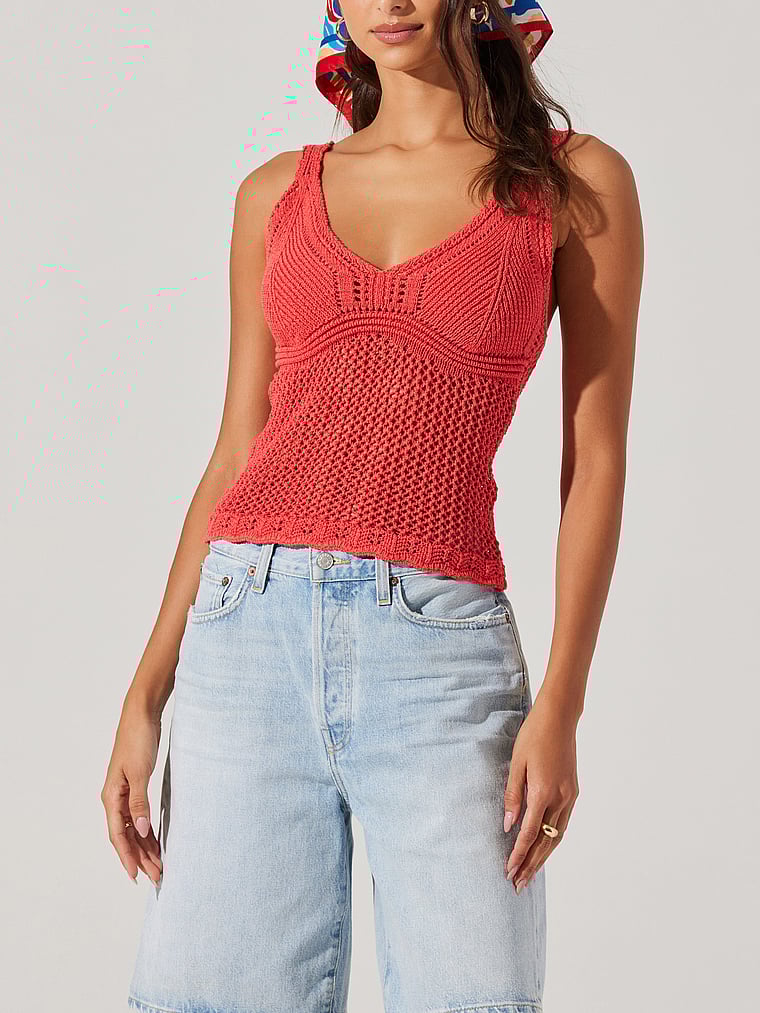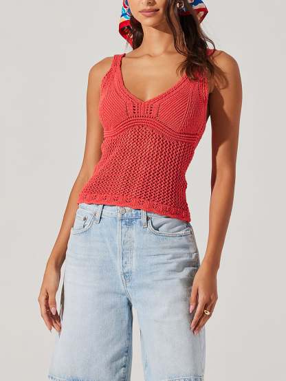 Crocheted from a high-stretch cotton, this boardwalk-ready Tank is finished with a flattering V-neckline and sweet, scalloped trims. Wear it over your Bikini or with your favorite cut-offs for a laid-back summer look.