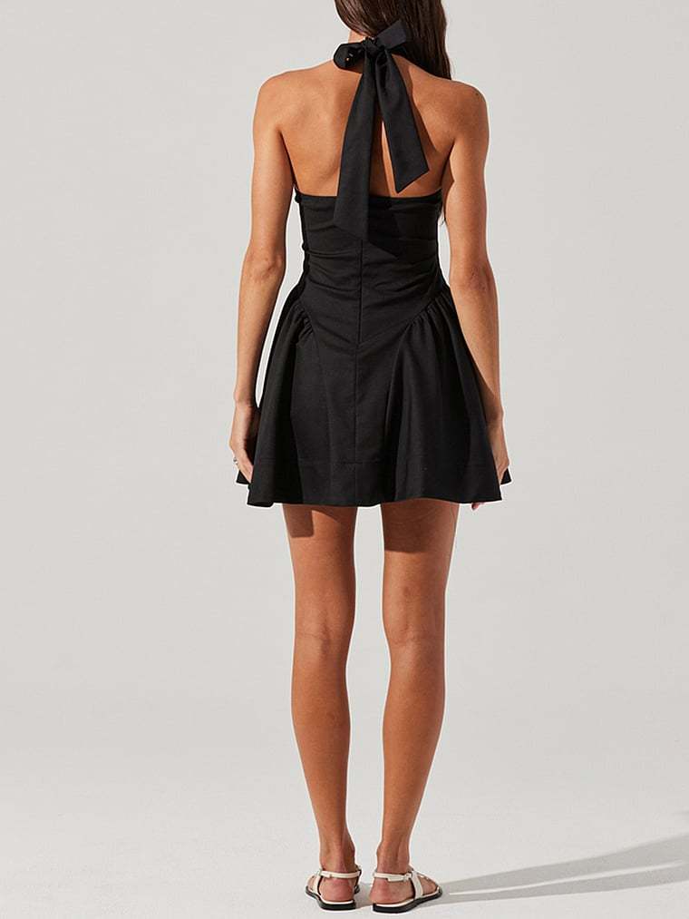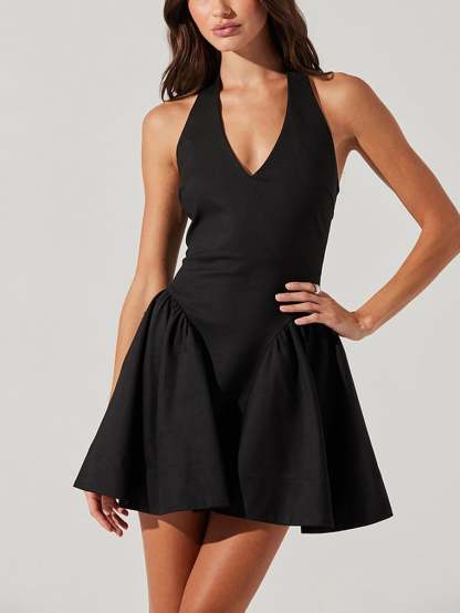 Little black Dress, lots of style. With an iconic fit-and-flare silhouette, this closet staple gets a glamorous upgrade with a V-neckline, halter straps, and an on-trend drop waist detail. Accessorize to your heart’s content for a different look, every time.