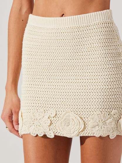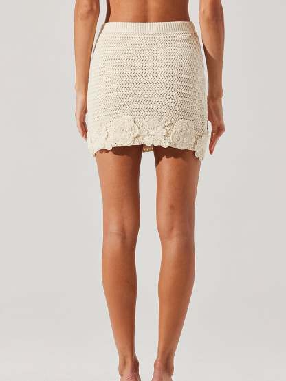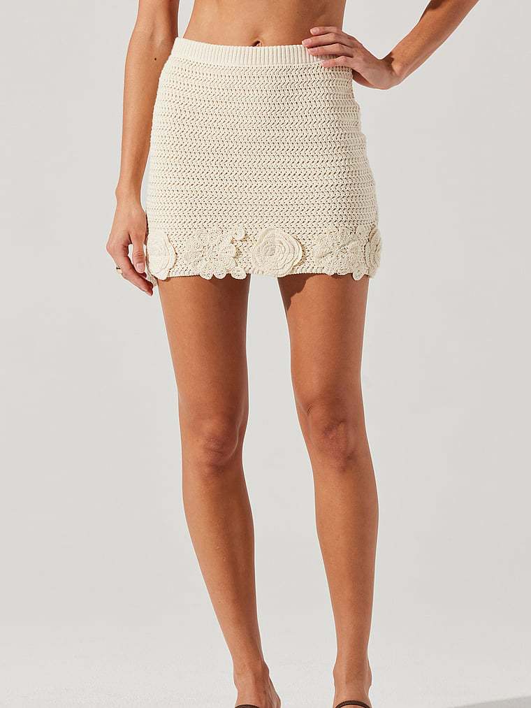 Sweet, floral finishes add an ultra-feminine touch to this beachy, crochet mini Skirt. This bodycon style is crafted from a stretchy, summer-ready cotton and pairs perfectly with the Taimi Sweater Vest.