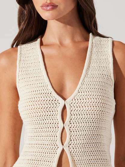 Cutout details add a flirty finish to this crochet Vest that’s crafted from a summer-ready, stretch cotton that hugs your curves. Pair with the Taimi Skirt for a coordinated, beachside look.