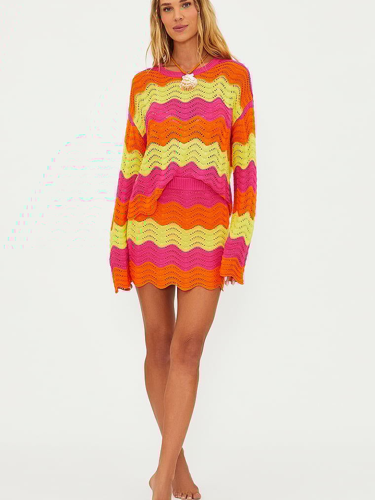 You'll wear this knit Skirt all summer long, thanks to its colorblocked motif and scalloped detailing