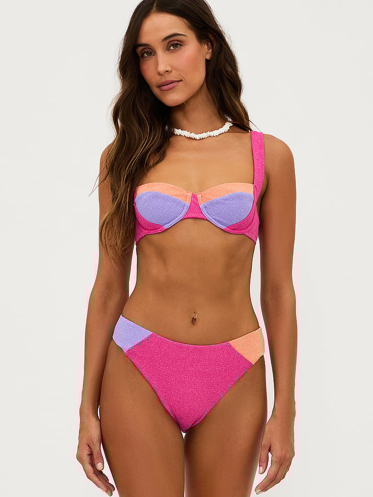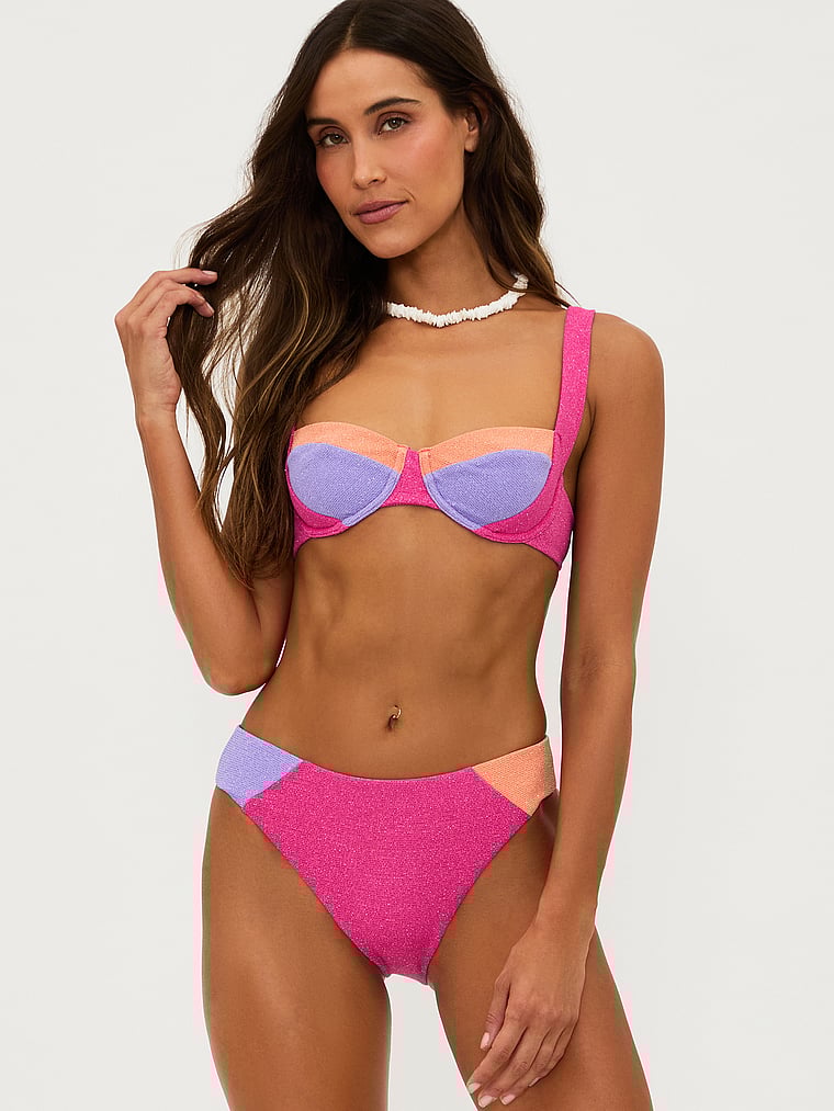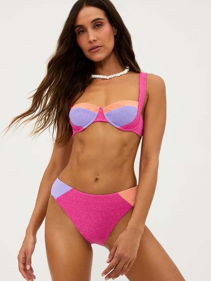 Pack your shades—you’ll be shining bright when you hit the beach in this glamorous Bikini Top that’s crafted from a shimmering fabric and features a flattering balconette-style silhouette. A built-in underwire adds extra support. For the full look, pair with the Kimora Bottom.