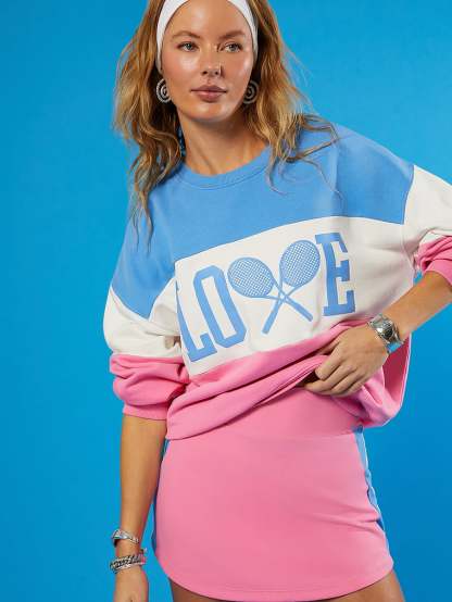 Perfect your serve in style. This comfy cotton Sweatshirt boasts a relaxed fit, ribbed trim accents, and contrasting, colorblock details. Make it a (game, set...) match and pair with the Thora Skort.