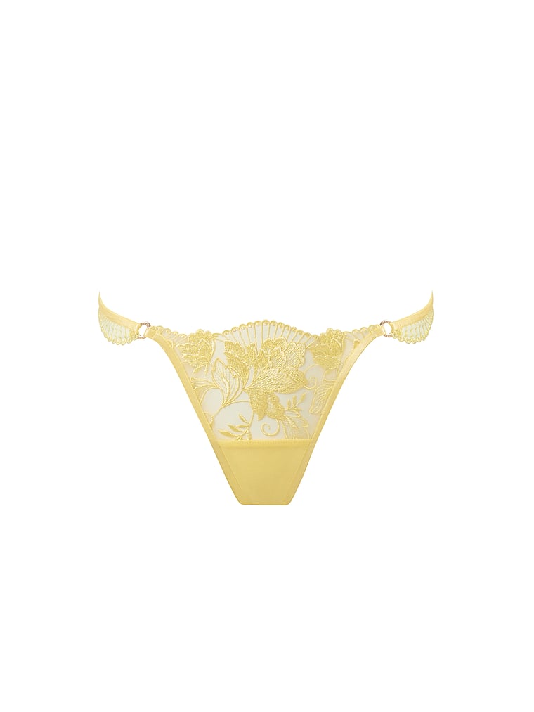 An embroidered pleated fan design and dainty floral accents give this elegant style an Art Deco-like feel. Pair it with the Gabriella Bra and Suspender for the full lingerie look.