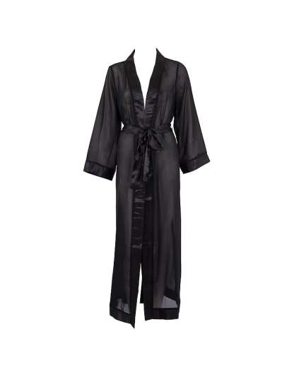 Lounging never looked so luxe—this kimono is made of sheer chiffon with satin edging for glamour and texture. It ties at the waist with a satin ribbon.