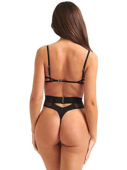 Whether worn in or out of the bedroom, you’ll make a scintillating statement in a graphic teddy featuring strappy cutouts and sheer mesh panels and that are suggestive without being too revealing. A dramatic V-wire notch between the cups kicks this one-piece up a notch. Style with your favorite blazer and jeans for the perfect high-low mix.