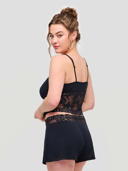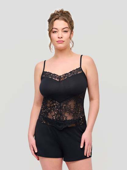 Made for sleeping or just lounging around the house, this wireless camisole and boxer set is made of soft modal with luxurious lace detailing.