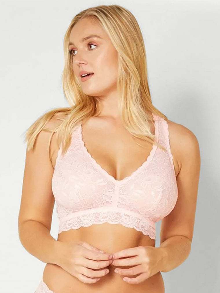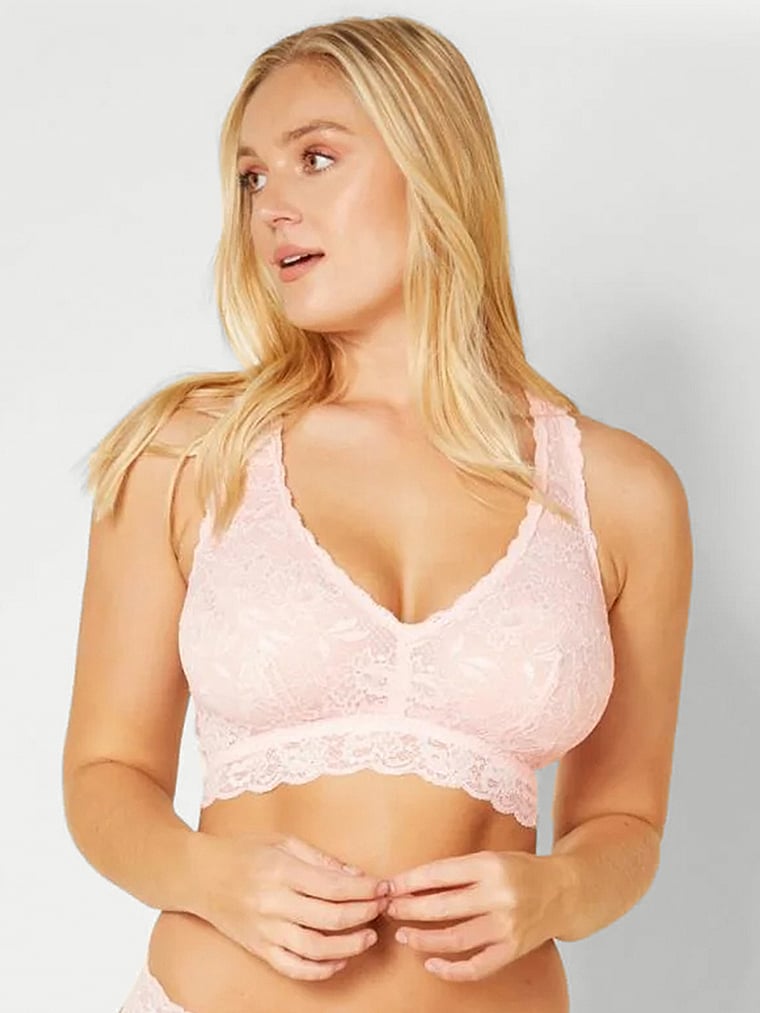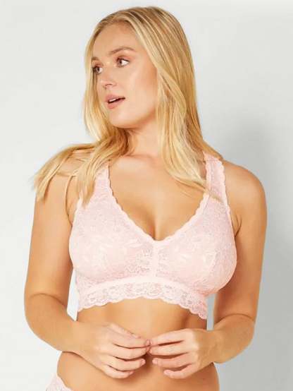 An effortless wireless racerback bralette, now available in curvy sizes for larger cups. Wide straps and soft lace make for elegant and comfortable all day wear.