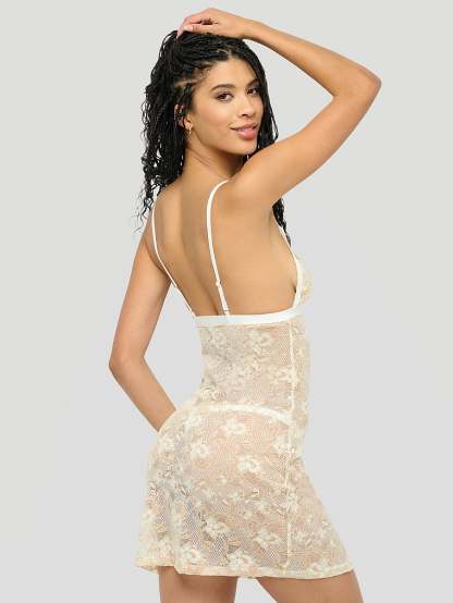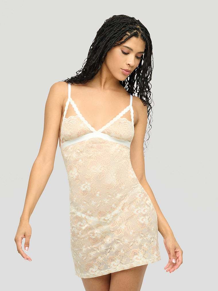 With playful cutouts, this semi-sheer slip-style Dress softly skims your curves to create a flattering silhouette. A plunging neckline completes the look.