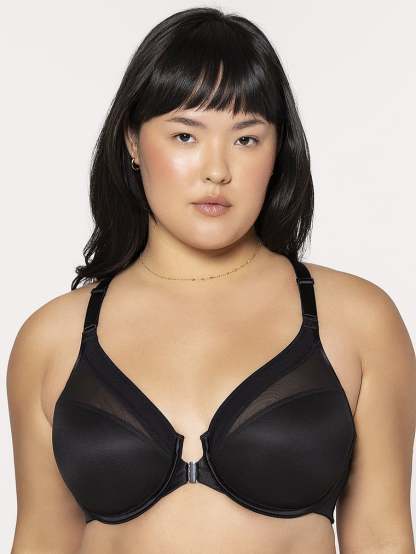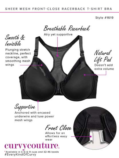 Curvy Couture Sheer Mesh Front-Close Racerback T-Shirt Bra