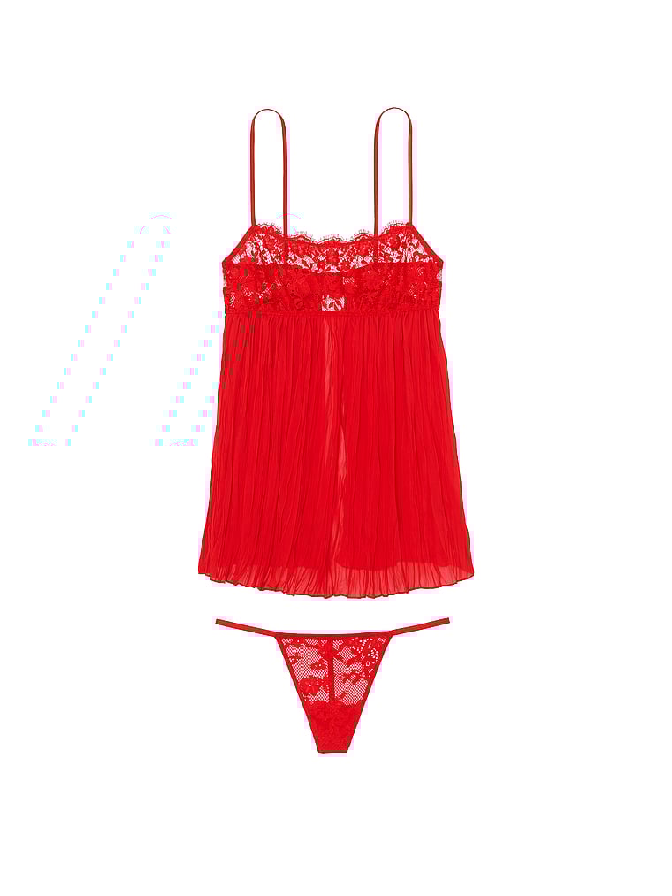 Dream Angels Dare to Dream Lace Pleated Babydoll Set