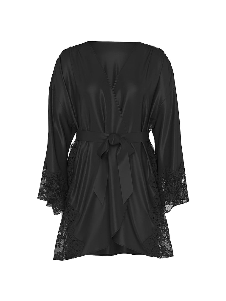 Details make the difference on this glossy design, complete with exquisite lace insets and a rounded tulip hem.