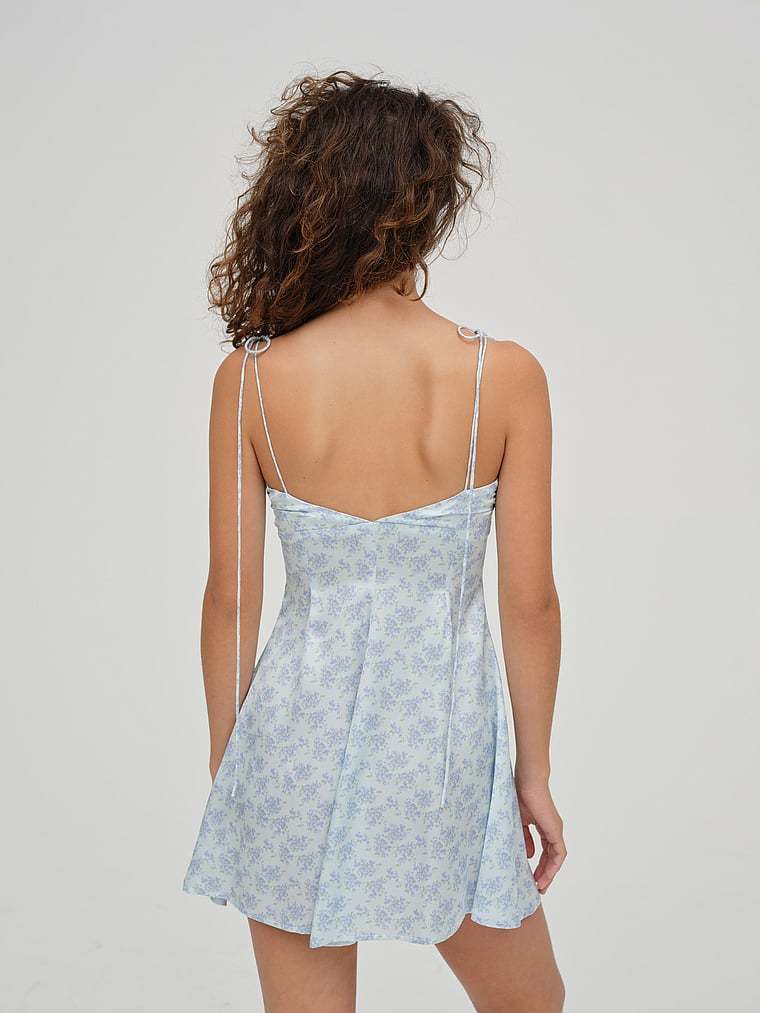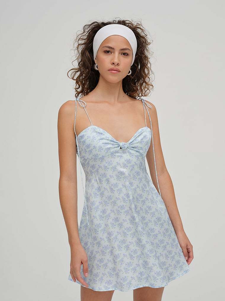Chic and effortless, with true minimalist appeal. This sweet Mini Dress features a fixed-knot detail with gathered finishes at the neckline, self-tie straps, and a slightly flared silhouette for a flattering fit. Perfect for warm days and balmy nights.
