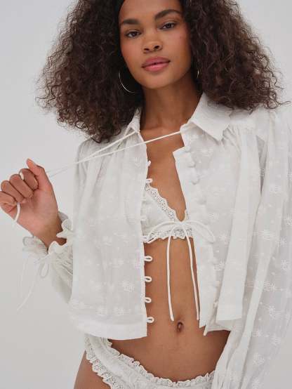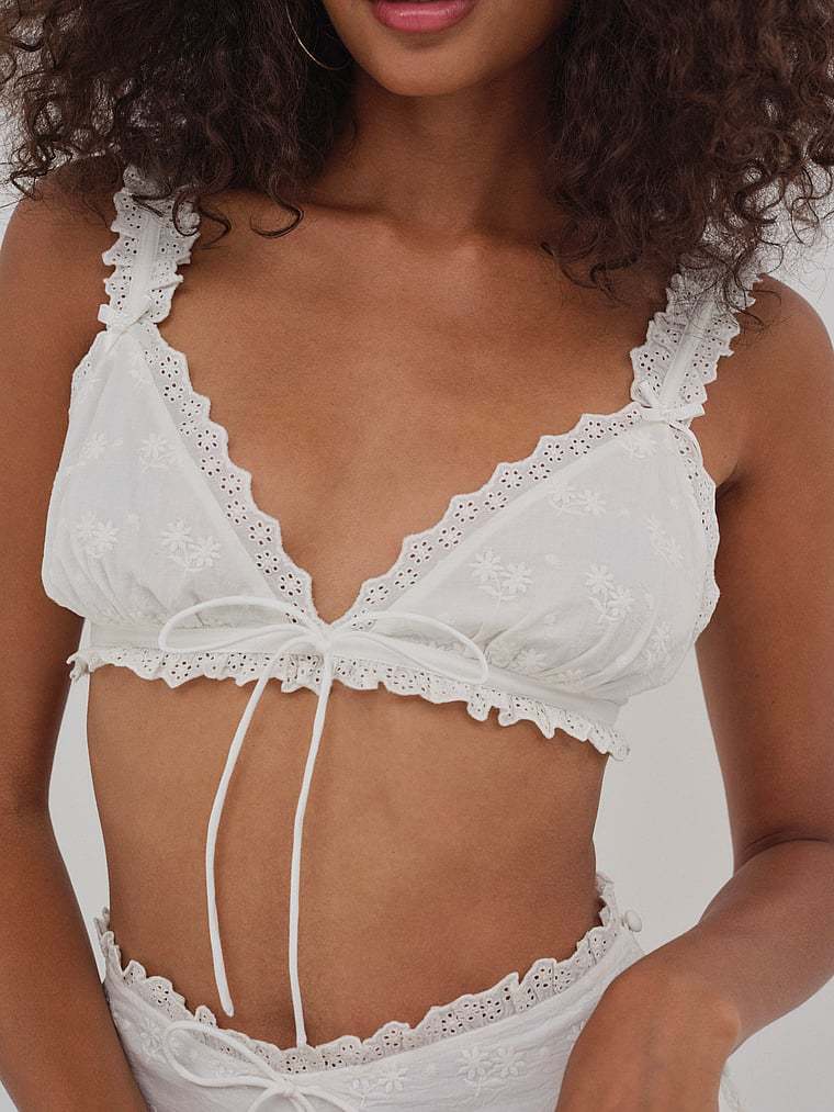 This oh-so pretty Bralette is crafted from sweet eyelet fabric and finished with a skinny lingerie bow and pearl flower detail.