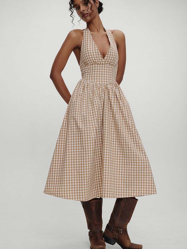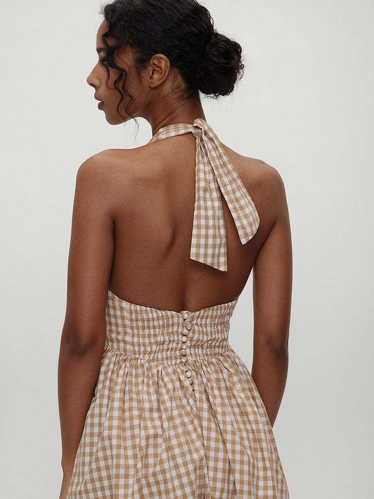 We know this isn’t your first rodeo when it comes to being best dressed at the function—that’s why you’re adding this super sweet, western-inspired Dress to your cart. This flattering halter silhouette is crafted from a soft cotton and finished with a feminine, flouncy Skirt and cute button details at the back. Exclusively from the Bella Hadid x Frankies Bikinis collaboration.