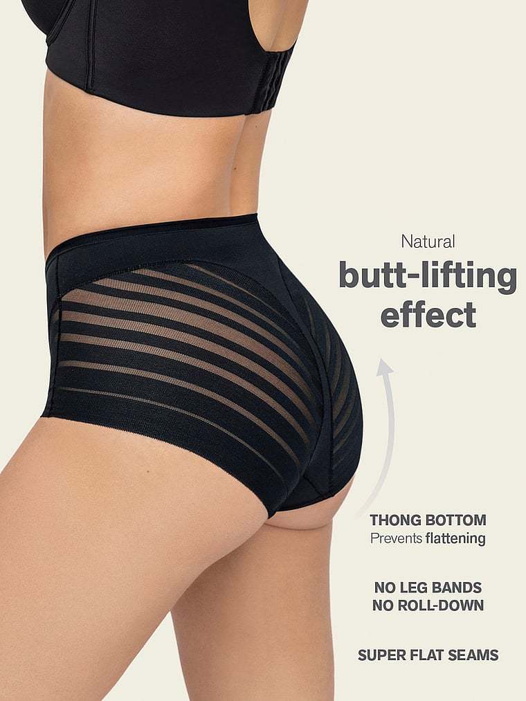 This contouring panty is made with our trademark DuraFit® fabric to gently flatten your tummy. Contrasting bands of our signature SmartLace® give this panty a sexy look. The semi-sheer bottom has ultra-flat, seamless leg bands, so it’s invisible under clothes. By Leonisa.