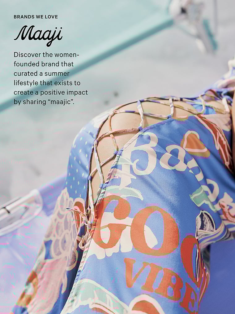 Maaji: Experience a perfect fit for every body, a rainbow of colors and prints, and inspired versatility from this consciously made swimwear and clothing company.