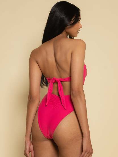 - Bandeau silhouette with ruched detailing