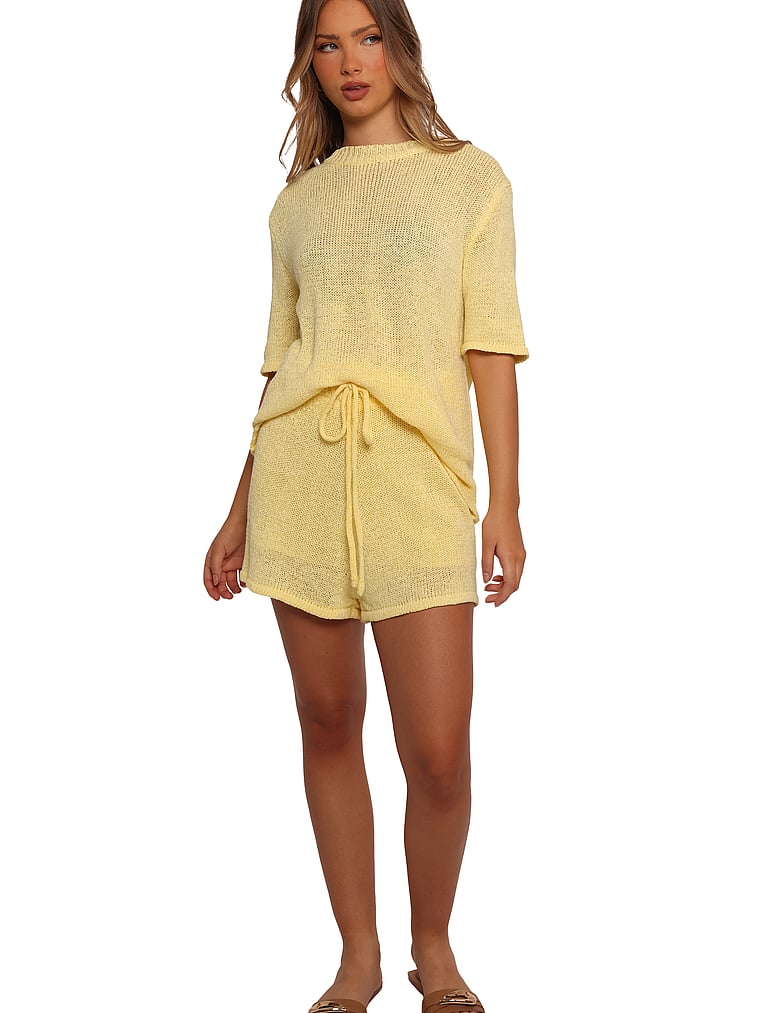 This two-piece set is your next summer style obsession. Perfect for beachy days or bonfire nights, it’s crafted from a delicate knit fabric in a bright pastel hue that will have you feeling instantly chic.