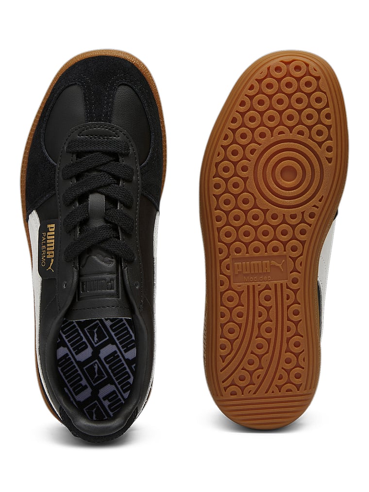 A terrace legend returns: The Palermo. The silhouette debuted back in the early '80s, where it quickly became a staple. Like the original, the Palermo is complete with its signature tag at the upper, a T-toe construction, and, of course, the classic gum sole. This version has a leather base with a suede Formstrip and suede overlays.