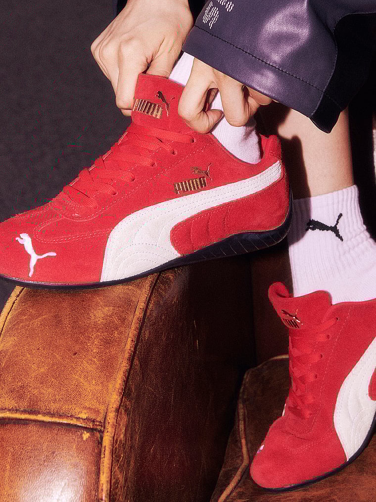 An icon of racing culture, the PUMA Speedcat has been synonymous with speed, precision, and unparalleled performance for over 25 years. It originated as a fireproof Formula 1® footwear style, but over the decades it found itself on a new circuit – transcending the tracks of Monaco for the streets. Wrapped in soft suede and premium leather, this silhouette is reissued in its original red and black colorways with a new PUMA Cat Logo at the front.