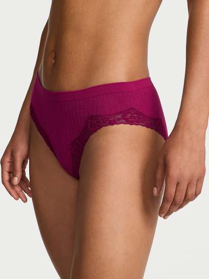 Seamless Seamless Rib Lace-Trim Hiphugger Panty Rib & Lace Trim