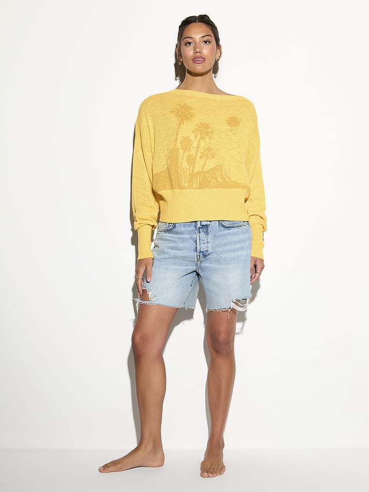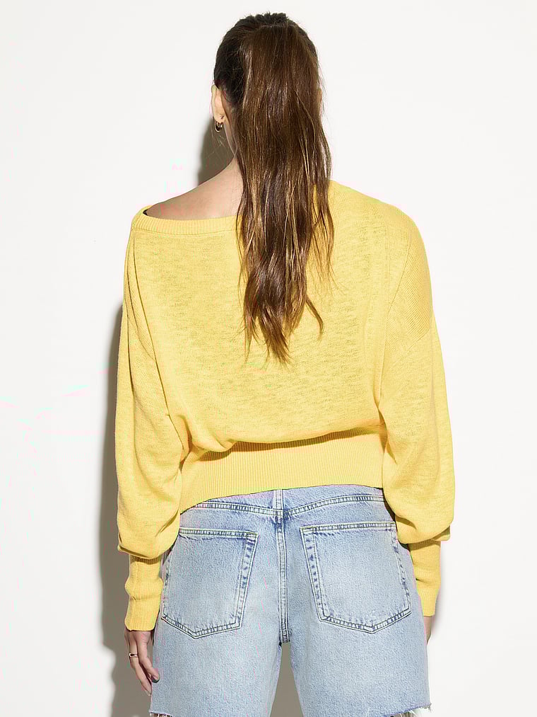 Crafted from a cloudlike linen-cotton knit, this effortless Sweater is your dose of sun-kissed LA style. With an off-the-shoulder silhouette, it’s the effortlessly cool layering piece you need for cool summer nights.