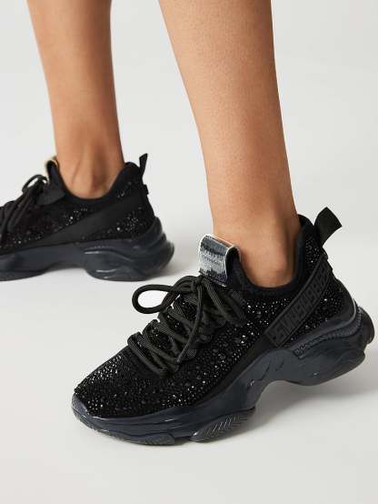 A super-sleek monochromatic color palette unites this kick’s trendy texture-blocked construction, which incorporates a knit upper, embossed strap detail, shiny sculpted sole and tastefully tonal rhinestone embellishments. ‘Tis the season for bling.