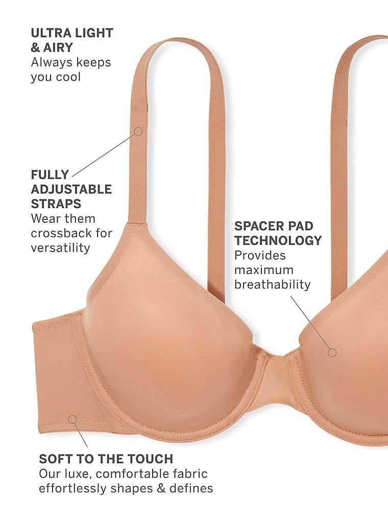 A full-coverage silhouette with soft-touch smooth cups for sexy shape. Featuring spacer pad technology that offers the opacity of your favorite padded bra with a lightweight, barely there feel.