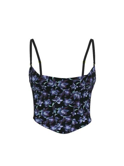 Richly hued, moody blooms get softened in velvet to create a lush pattern on this dramatic Corset Top. Removable straps let you customize the style while flexible boning comfortably shapes the sophisticated design.
