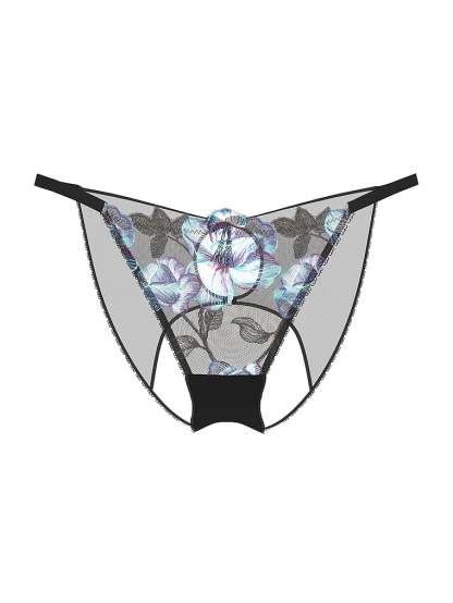 Richly hued, moody blooms are artfully embroidered on this ultra-sexy ouvert Panty. A dainty tasseled bow finishes the design.