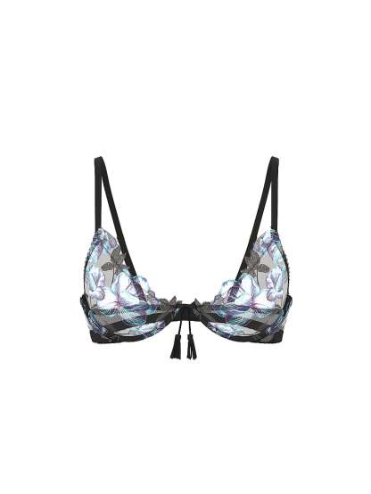Richly hued, moody blooms are artfully embroidered on sheer tulle mesh on our provocative, low-cut demi frame. It showcases your décolleté with a deep plunge neckline that's perfect for revealing tops. Paired with a matching Panty, it's a ensemble that won't soon be forgotten.