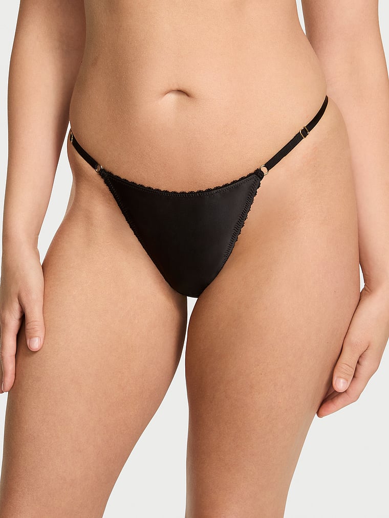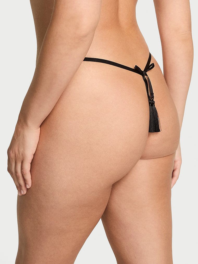 A tasseled back bow on this sexy satin V-String Panty complements its sleek design to perfection.