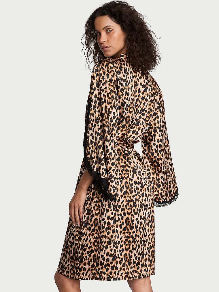 Very Sexy Satin Rose Lace-Trim Midi Robe