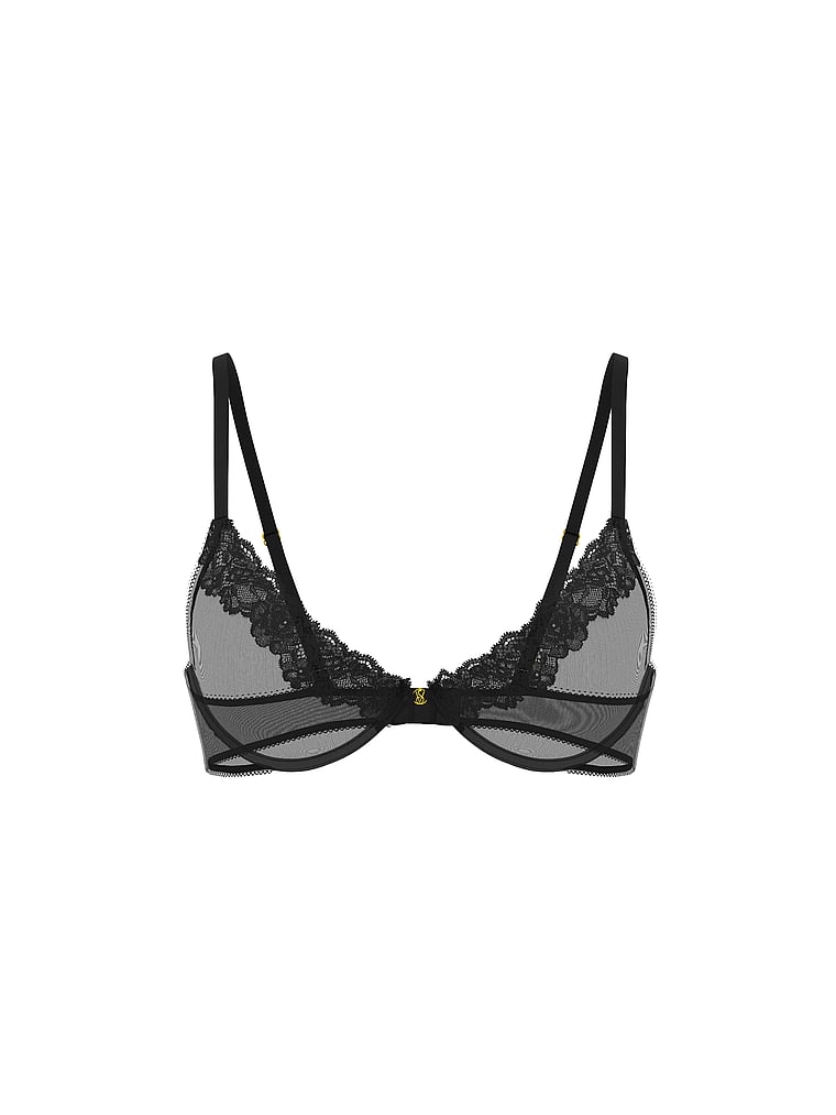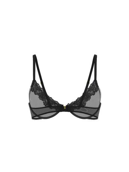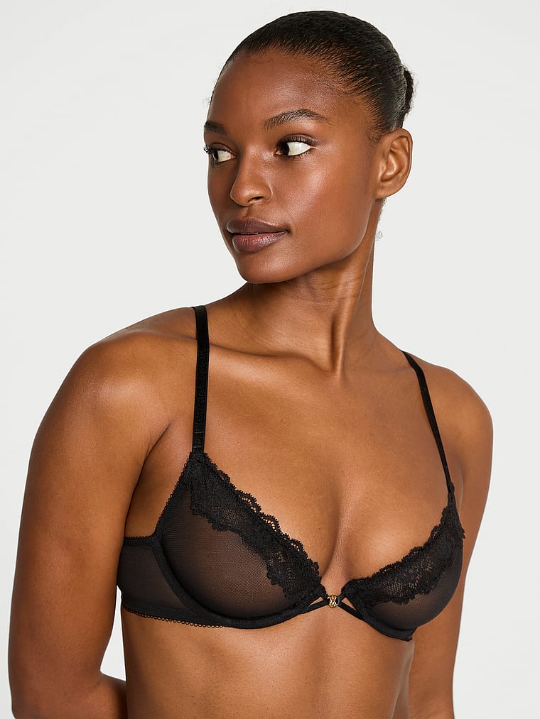 Discover an everyday pick-me-up in a lightweight, unlined design with a barely there feel. This low-cut style features sheer mesh with rose lace trim and our signature crisscross detail with golden logo hardware.