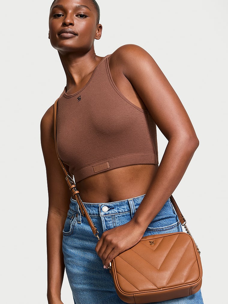 Our signature V-quilt pattern pairs perfectly with a chain-detailed strap. This softly structured crossbody is finished with a sleek top zip for easy access to phone and essentials.