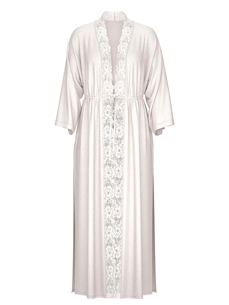 Victoria's Secret Ribbed Modal Lace-Trim Long Robe
