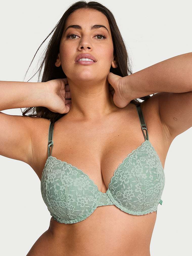 Wear-testers agree: Our newest lace is softer and stretchier than ever for ultimate comfort—it's also exceptionally pretty, featuring knit-in logo details. Feel the difference for yourself with this sexy Demi Bra, complete with light lining for natural-looking shape and coverage..