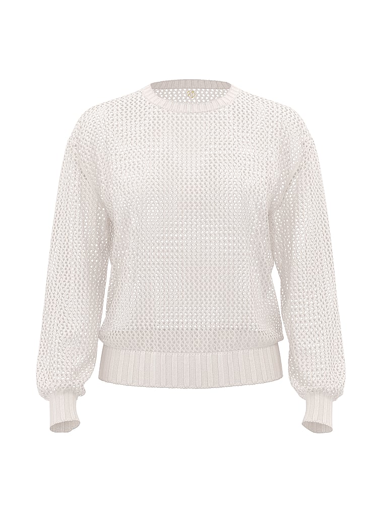 It's the perfect summer Sweater—lightweight and relaxed in an open-work crochet knit that shows just the right amount of skin. See-through styling is ideal for showing off a cute suit underneath.