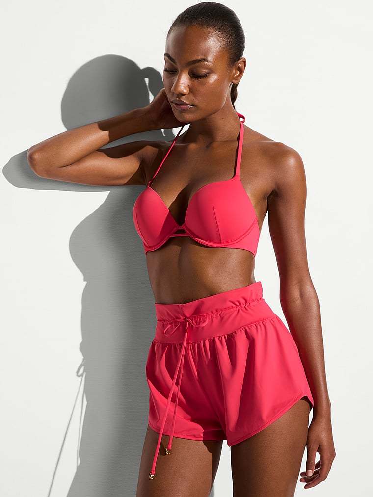 Crafted in water-ready swim fabric, this versatile, comfy pair is just the thing to pop over swimwear for added coverage when you want it. The high-waist design is finished with an adjustable drawstring.